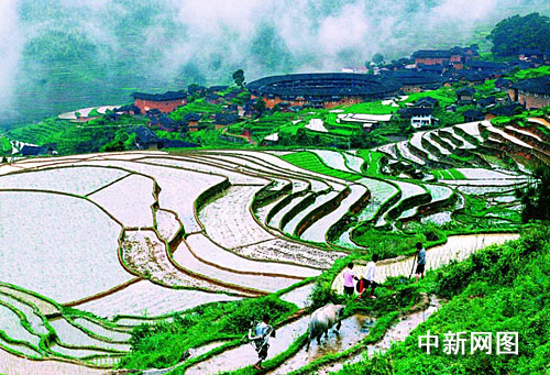 今年春節期間,中共中央總書記胡錦濤考察福建,前往參觀了被列入世界文化遺產名錄的永定客家土樓,稱贊“客家土樓是大家庭、小社會和諧相處的典范”。