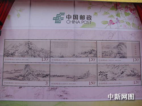 中新網常熟3月20日電 (記者 唐娟)20日上午,以《富春山居圖》整幅畫卷為藍本的特種郵票首發儀式首先在黃公望的家鄉江蘇常熟舉行。黃公望公元1269年出生于江蘇常熟,死后亦安葬于此。在常熟石梅廣場舉行舉行的揭幕儀式上,郵票設計師郝旭東表示,自己能設計郵票很榮幸,希望能通過郵票傳承中國文化,并促進兩岸的文化交流。他下午還將趕赴在浙江出席豐相關的慶祝活動,據了解,今日下午,在浙江舉行的首發儀式上,蔡友等3位臺灣藝術大學的知名畫家以及包括浙江畫院院長孫永在內的6位大陸知名畫家,將共同揮毫潑墨,在15米的長卷上重新繪制《富春山居圖》。