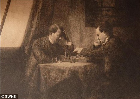 希特勒與列寧下棋素描將拍賣(圖)