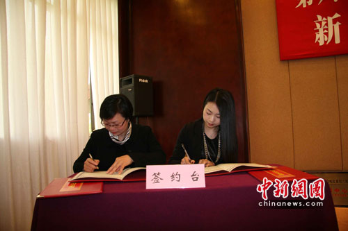 圖為新華社浙江分社、中新社浙江分社代表參加媒體合作簽約。 作 者:李飛云