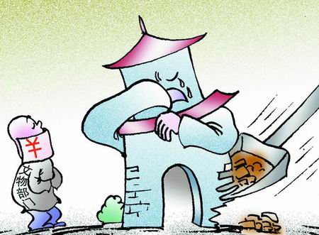 據悉,大理市交通局和國道214工程指揮部為了降低成本,輕易放棄了原來可以很好保護龍首關的道路繞行施工方案,轉而采用橫切龍首關南、西、北三道城墻的施工方式。他們為何能夠“心想事成”?報道中大理市交通局趙勇超書記道出了原委:“文物部門不就是要錢嘛!要我們出224萬元的考古發掘費用,談不攏就下達停工通知。現在我們已經把錢打給他們了,所以他們也就不說什么了。”