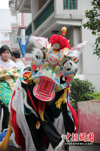 上午9點半,沙欄嚇村的吳氏宗祠前,吳姓老人們在祠堂內向祖宗敬香。麒麟舞依然是主要的慶祝活動。隨后,由兩頭矯健的麒麟帶隊,40多位吳氏村民組成的麒麟隊,連同他們吸引的大批村民和觀光客一同浩浩蕩蕩地繞村一周,為全村祈福迎祥。半個多小時后,游行隊伍在敲鑼打鼓和鞭炮齊鳴聲中抵達祭祀媽祖的天后宮。