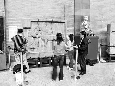 賓大博物館中國館中的文物修復(fù),并未影響其對(duì)外開放,專家們的工作,完全是敞開式的,觀眾可隨意參觀。許多觀眾對(duì)西安的文物專家表示欽佩。一位名叫程佳來自北京的中國留學(xué)生在“兩駿”現(xiàn)場(chǎng)告訴記者:賓大博物館的中國館不錯(cuò),從青銅獅子到二駿馬,從慈禧的水晶球到一尊尊的佛像。讓我們這些留學(xué)海外的學(xué)子既自豪又感慨。自豪是因?yàn)檫@一件件藝術(shù)展品都滲透出我們博大精深的幾千年文明,感慨是因?yàn)檫@些展品也同樣記錄了當(dāng)年屈辱的歷史。