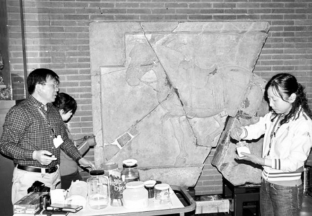在完成了一系列的前期試驗準備工作之后,當?shù)貢r間5月18日,西安赴美的文物修復(fù)專家與美方專家一道開始對“二駿”本體實施修復(fù),工作由實驗室研究轉(zhuǎn)至為文物實體的補全。