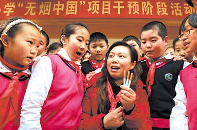 老師在教室、走廊等公共場所吸煙,將受到扣獎金等系列處罰。昨日,我市首個“無煙學校”創建活動在珊瑚實驗小學正式啟動,該校校長邀請全體同學積極參與控煙行動,并隨時監督和舉報老師的不文明吸煙行為。