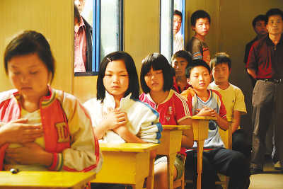 “有了教室,有了生命,我們能夠在廢墟中站立起來,開始更美好的生活,我們強不強?”——在董慧娟的帶領下,28個孩子舉起右臂,右手握拳,喊出“強!強!強!”的口號。
