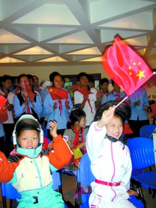 昨天下午,在中國福利會少年宮,學生們穿著自制的宇航服齊聚一堂,收看中央電視臺現場直播宇航員出艙活動。