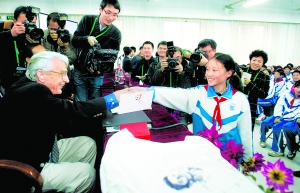 本報訊(記者蔡文清 黨曉暉)昨天上午開幕的“2008諾貝爾獎獲得者北京論壇”從下午開始插入“親民”環節,在參加論壇之余,部分嘉賓深入高校、中學與同學們進行面對面交流。