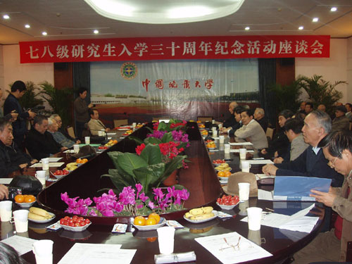 中新網(wǎng)12月10日電 據(jù)美國(guó)《美中信使報(bào)》與《中國(guó)地質(zhì)大學(xué)》校刊聯(lián)合報(bào)道: 中國(guó)著名的高等學(xué)府---中國(guó)地質(zhì)大學(xué)于12月6日至12月9日分別在武漢和北京兩地舉行了隆重的紀(jì)念活動(dòng), 熱烈慶祝該校當(dāng)年在鄧小平同志的親筆批示和直接關(guān)心下恢復(fù)研究生教育, 伴隨著中國(guó)全面改革開放的步伐, 走過了30年的光輝歷程. 該校在文革后首批招收的1978級(jí)研究生近五十人, 也分別于12月6日和12月8日從全國(guó)各地回到北京和武漢兩地的母校, 紀(jì)念這一載入中國(guó)高等教育史冊(cè)的重要日子, 紀(jì)念鄧小平同志為該校成立研究生部?jī)纱巫鞒龅挠H筆批示30周年。