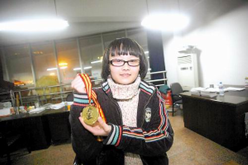 楊柳展示她獲得的金牌。 記者 張曉 攝