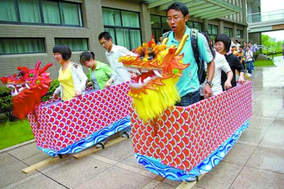 除了吃粽子和看龍舟賽,大學生在端午節還可以做些什么呢?在端午節即將到來之際,華東師大舉辦了一場“首屆端午文化節”。文化節上,大學生們看表演、穿古裝、賽旱船、學剪紙、賽詩歌,他們不僅嘗試了端午節的另一種“過法”,也在歡樂的氣氛中感受到了中華民族的傳統風俗和文化。