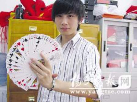 揚(yáng)州大學(xué)物理學(xué)院物理教育應(yīng)屆畢業(yè)生王杰長相酷似劉謙,特別喜歡魔術(shù),在東南衛(wèi)視與劉謙同場(chǎng)錄制節(jié)目時(shí)被誤認(rèn)為是“雙胞胎”。小王先后10次被邀請(qǐng)到省級(jí)電視臺(tái)做客,前不久還喜獲江蘇省魔術(shù)大賽大學(xué)生組冠軍。他表演魔術(shù)15分鐘收入千元,最近半年進(jìn)賬萬余元。師范專業(yè)的小王目前已如愿以償?shù)嘏c大連一家魔術(shù)團(tuán)簽約,即將成為一名專業(yè)魔術(shù)師。