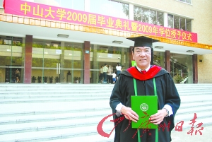 中山大學(xué)昨日舉行的兩場(chǎng)畢業(yè)典禮出了兩個(gè)人物,第八場(chǎng)畢業(yè)典禮上出了個(gè)66歲的碩士,第十一場(chǎng)畢業(yè)典禮則出了個(gè)66歲的學(xué)士。同樣是60多歲的年紀(jì),兩位老人同樣選擇了重回校園,背后有什么樣的動(dòng)力支撐著他們?