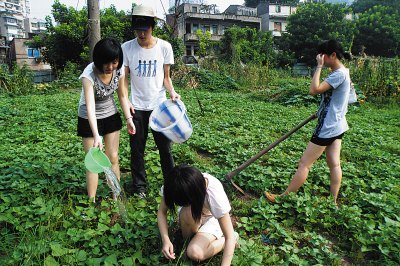 通過篩選,小庚和另外3名女生入選了這次活動,巧合的是,四人竟然全是網上偷菜游戲的資深玩家。7月18日,四名同學就搭上了商報特派專車,來到了南岸區彈子石的一處菜園,開始了他們的種菜活動!