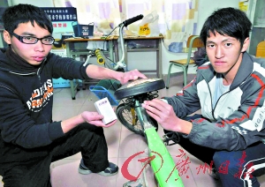本報(bào)訊 (記者李立志 通訊員南宣)10來(lái)元錢的門鈴還有什么其他用途?南沙黃閣成人學(xué)校梁俊斌和張啟華手里拿著一個(gè)自行車的頭籃,一個(gè)自行車的座包,一個(gè)常見(jiàn)的家用門鈴,這就是“自行車防盜報(bào)警器”。他們經(jīng)過(guò)三個(gè)多月的時(shí)間研制,發(fā)明了這個(gè)東西。在第25屆廣州市青少年科技創(chuàng)新大賽上,南沙區(qū)黃閣成人文化技術(shù)學(xué)校兩個(gè)農(nóng)村的孩子發(fā)明創(chuàng)造作品《自行車防盜報(bào)警器》獲得了金獎(jiǎng)。