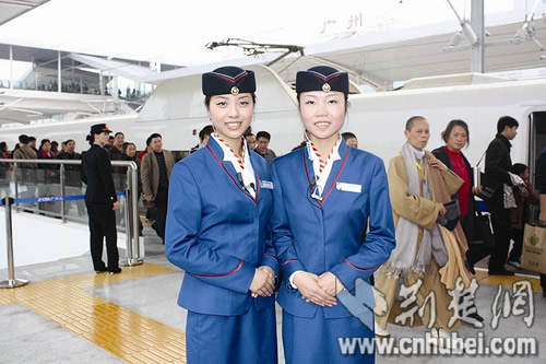 經(jīng)過三次試運行,12月26日,京廣高速鐵路武廣段正式開通運營,武漢火車站也同時投入使用。72名大學生“動姐”,正裝上崗,成為動車組上最靚的風景。