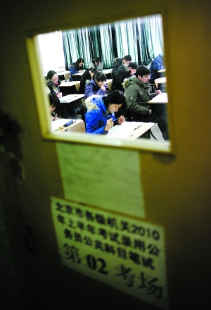 7日,北京2010年上半年公務員招錄筆試舉行。和“國考”類似,北京“公考”中,申論關注的是和環保、健康相關的問題,要求就健康對國家強盛、社會和諧、人民幸福3方面關系展開論述。此次“公考”首次實現應屆生和在職人員“混考”,并首次實現電腦閱卷。