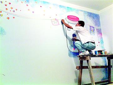 “傳統裝修視覺上平面、乏味,而墻繪卻可以營造出立體感,個性十足。”市場調查后,陳斌決定創辦一個墻繪工作室,既能發揮自己的美術專業專長,又能實現創業夢想。同學武杰一拍即合,兩人果斷籌集了1萬元啟動資金,并邀請劉慧等3名女同學加入進來。今年5月17日,5位大學生的工作室正式成立。