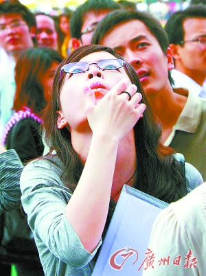 今年在某二類高校讀大四的畢業生小王,跨校、跨專業報考了北京一所重點大學新聞系的碩士研究生,但因距離分數線3分之遙而落榜。得知自己落榜消息的小王,趕緊利用周末時間參加了在4月10日舉行的廣東省2010應屆畢業生招聘會,在會場外猶豫了許久的她抬起頭深深地呼吸了一口氣,然后整理了一下著裝便走進了會場。