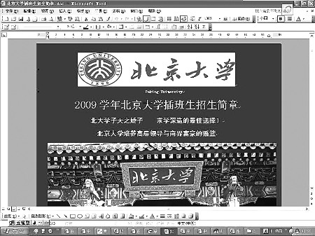中凰天龍發(fā)來的招生簡章介紹說,北京大學(xué)插班生是指跟隨北京大學(xué)全日制本科生一塊學(xué)習(xí)、活動,僅是一次享受北大的文化氛圍,提升自身的知識水平的學(xué)習(xí)過程,畢業(yè)只頒發(fā)結(jié)業(yè)證,不屬于統(tǒng)招范疇。學(xué)生擁有聽課證,可以選擇專業(yè)跟讀。除了給招生代理公司交中間服務(wù)費外,學(xué)生還要向?qū)W校交學(xué)費7000元 /年、學(xué)雜費3000元、床位費500—600元/月等多項費用。