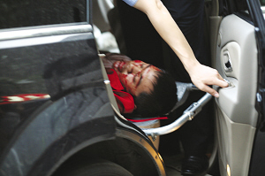 在此情況下,指揮人員決定讓特警采取強攻。于是,由一名便衣人員上前吸引嫌疑人注意力,以讓其打電話為名,引其抬頭,而持槍待攻的特警趁此機會沖進屋內,直逼歹徒面前,果斷向其開槍,將其面部擊傷,歹徒頓時血流滿面。這突如其來的襲擊,讓歹徒受了不小的驚嚇,加上天氣炎熱,歹徒本來體力消耗就比較大,其頓時出現了虛脫,立馬癱在地上動彈不得。歹徒經過簡單包扎傷情很快就穩定了下來,被警方帶走。