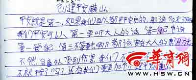 她在這段題為《創(chuàng)建平安橫山》的日記里寫(xiě)道:如果我們每個(gè)人都平平安安的,那該多好。〔还芤ツ,都該要有大人的幫助去,不然會(huì)意外受到傷害,我們不要去不平安的地方,不就平安了嗎?