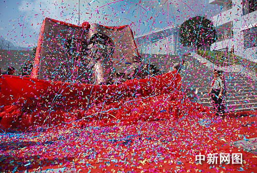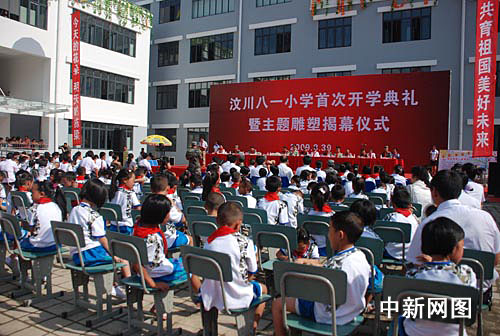 中新網(wǎng)汶川8月30日電(鐘美蘭)紅旗招展,彩帶飄飄。30日,由第二炮兵對(duì)口支援,在廢墟原址上建設(shè)汶川八一小學(xué)開(kāi)學(xué),學(xué)校舉行了隆重的開(kāi)學(xué)典禮。