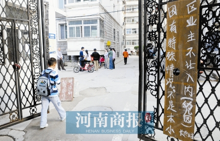 9月15日上午7時許,鄭州市伊河路與桐柏路交叉口附近的長宏花園小區(qū)門口多了個牌子:因有特殊原因,不是本小區(qū)業(yè)主不讓入內(nèi)(幼兒園)。落款為長宏業(yè)主。同時,小區(qū)業(yè)主也當(dāng)起“門神”,守著小區(qū)大門,不讓學(xué)生進(jìn)入小區(qū)內(nèi)長宏幼兒園上課。