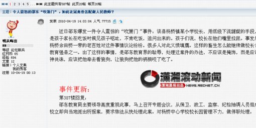 19日晚,有網友將此事發帖在紅網論壇上,立即引來眾網友熱議,已有7萬多網友點擊關注,同時也引起當地教育部門關注。據瀟湘晨報滾動新聞記者了解到,目前,此事已報案,當地教育部門和警方就此事展開調查。