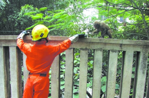 “119嗎?我們學校來了一只頑猴,請幫忙擒拿!”昨日上午,一只小猴子闖入攀枝花市第九中學校園內“搗亂”,校方發現后立即報了警。經過10多分鐘的較量,小猴子被消防官兵擒住后送往公園放生。