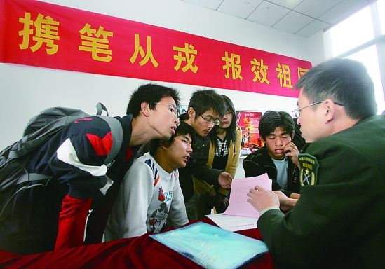 據徐主任介紹,今冬征兵工作與往年相比,有三個新特點:一是根據科技強軍的需要,首次大量征集高校應屆畢業生入伍;二是首次實行面向社會普遍報名征集女兵;三是突出強化征兵廉政建設。據不完全統計,全省報名應征的適齡青年已達20多萬人。