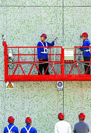 這 93名考生分別由11家保潔公司推薦,都有高層建筑保潔工作經驗,考試之前全部經過100學時的培訓。43歲的付正會從事高層建筑保潔工作有十幾年了,鳥巢、水立方的“洗臉”工程都參與過。“像鳥巢這樣的大項目,要50多人干上半個月呢。”付正會說,這工作收入不低,但有些危險,干活兒的工人都應該經過專業培訓和考試。