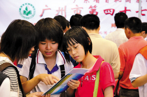本報訊 記者陳學敏、黃玉杰,實習生黃杰敏,通訊員戴秀文報道:雖然天公不作美,但昨天清晨開始的那場大雨,根本沒有減退家長的熱情。2009年廣州市中招現場咨詢會吸引了從四面八方趕來的家長,令原本可以同時容納上萬人的琶洲C展館顯得有點“擠”。