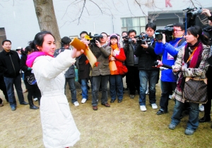 來自山東濟南藝校的戴安娜一陣清脆的快板立即引來媒體的鏡頭。戴安娜說,她學了兩年多山東快書和快板,目前已經(jīng)能表演多個小段,和兩三個傳統(tǒng)大段快板書。今天的初試主要考朗誦和集體小品,小品由8個人一組集體表演,戴安娜所在小組抽到的題目是“意外的財富”,小組考生們自編了一個關于分家產(chǎn)的故事。戴安娜說,她對今天的初試充滿信心。