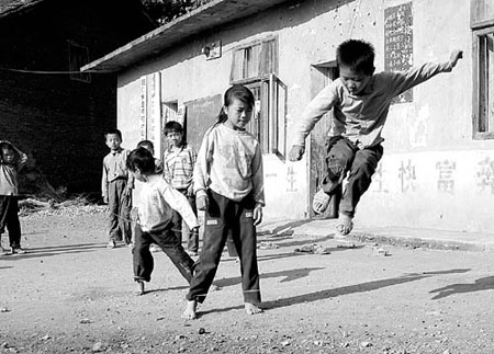 油落小學的孩子們在簡陋的操場上玩耍。 趙筑榮攝