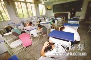 重慶考場進行防震演習 "強余震"兩分鐘撤離(圖)