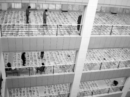 記者在現場看到,每一個閱卷區域都將幾百份試卷整整齊齊地擺放在地板上,然后專家依次進行打分。據介紹,閱卷專家總是盯著同樣的試卷,差不多超過十分鐘就會出現視覺疲勞,為了讓打分更合理公平,差不多過一刻鐘左右的時間,專家都要停下來調節一下,然后再評分。省招考院普招處張志剛處長介紹,所有閱卷教師在整個閱卷期間都封閉管理,手機等通訊工具都由閱卷管理機構統一保管。