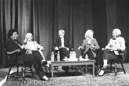 2007年5月3日,“常青藤盟校”的新老共五位女校長德魯·福斯特(中)、魯斯·西蒙斯(左一)、雪莉·提爾曼(左二)、艾美·古特曼(右二)和朱迪·羅丹(右一)齊聚位于哈佛大學,共同探討高等教育的發展問題以及變化中的女性角色問題。