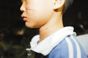 只要一碰淘淘的脖子,他就會(huì)往后縮。因?yàn)樗牟弊由嫌袔兹亢邸L蕴哉f,是媽媽用繩子綁的,因?yàn)樗蓿瑡寢屔鷼猓赃@樣箍他。