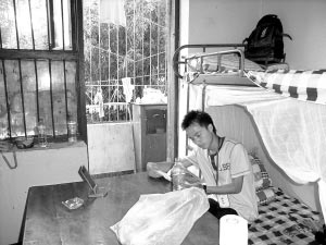 “我們在這里生活無憂,而且每天都還有志愿者和社會各界人士來探望。”尹忠偉被轉移到成都中醫藥大學下汪家拐校區,和小尹同安置在該校區的還有他學校的70多名高三同學。他住在一幢6層的宿舍樓,宿舍內窗明幾凈,地面整潔,床鋪全是新的,枕頭也是新的,甚至書本也是新的。“全是政府配置的,書本則是志愿者送的”。小尹坐在床邊的桌子旁,復習著功課。小尹說,在這里他不僅感受到了溫暖,更可以安靜迎考,他一定要考好,否則對不起幫助他們的人。