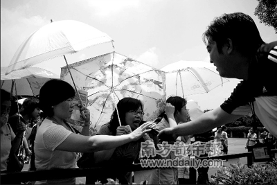 昨日上午7時40分,距離開考還有20分鐘時間,育才實驗學校門前已車水馬龍。記者看到,從省中醫院二沙島分院到該校門口,送考車輛排成長龍,夾在送考車輛中的公交車進退兩難,塞車狀況持續了近20分鐘。楊女士和女兒打的士到中醫院門口,發現前面車輛已是水泄不通,她和女兒不得不下車,急急忙忙朝考場趕去。考場門口人山人海,不少家庭都是“傾巢出動”,全家陪考。