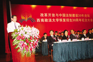 昨日(4日,下同),西南政法大學恢復招生30周年紀念大會召開 本報記者 王雄 攝