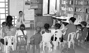 郭以琳家在麗江花園小區(qū),表面上與鄰居家并無二致。一打開門,才會(huì)發(fā)現(xiàn)這個(gè)100多平米的3居室里別有天地。整個(gè)客廳都是小朋友們的“教室”,投影大屏幕是“黑板”,兩個(gè)臥房里鋪著一排被褥供孩子午睡。“我們這幾乎是個(gè)小聯(lián)合國(guó)”,郭以琳告訴記者,她家的小幼兒園開辦一個(gè)多月,已經(jīng)有10幾個(gè)學(xué)生,一到上課時(shí)間,中國(guó)孩子、美國(guó)孩子、南非孩子坐成一排,小朋友們跟自己的小國(guó)際友人玩得很開心,3歲的中國(guó)孩子就能掌握1000多個(gè)英語(yǔ)單詞。記者在“教室”里看到,兩個(gè)年輕的女老師一邊讓小朋友們看動(dòng)畫片,一邊教他們學(xué)自然知識(shí)、英文單詞,更像是帶小朋友玩游戲而不是“上課”。