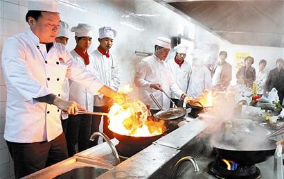 中國烹飪大師王輝亞的參與,另三位烹飪大師余明社、孫昌弼、徐家瑩擔任評委,使昨日的廚師選拔賽的“含金量”增加了不少。“一般的烹飪大賽,只是面點或熱菜等單項比賽,此次選拔賽要求我們面點和中式菜肴都要會。”王輝亞說,“這樣‘十項全能’式比賽,比全國烹飪大賽難度大很多。”