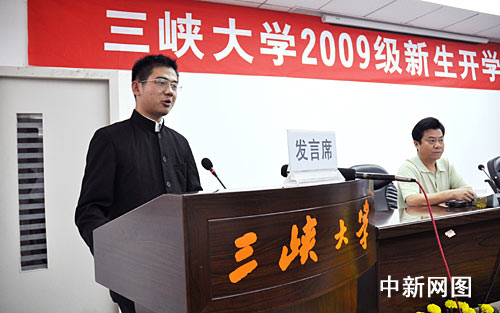 中新網(wǎng)宜昌10月9日電(記者 郭曉瑩)10月9日下午,三峽大學(xué)為包括“最牛作文考生”周海洋在內(nèi)的5名新生舉行了一個(gè)簡短而隆重的開學(xué)典禮,至此,周海洋正式就讀于三峽大學(xué)。