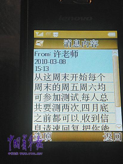許老師告訴龍劍,測試是在北航附近的一家星級賓館。他會在每周一給龍劍發(fā)短信,詢問是否本周能參加測試。