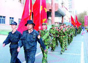 “腳底磨出水泡也要繼續(xù)走!”5月9日,晚上9點(diǎn),一支徒步隊(duì)伍途經(jīng)市中心的西大橋路段,身穿迷彩服的年輕教官對(duì)已經(jīng)走了12個(gè)小時(shí)、50多公里的50多名學(xué)員大聲地喊著。隊(duì)伍中的學(xué)員最小的12歲,最大的19歲,他們統(tǒng)一穿著迷彩服,3名新學(xué)員皮膚略顯白皙外,其余的學(xué)員臉上都有陽(yáng)光暴曬后的痕跡。