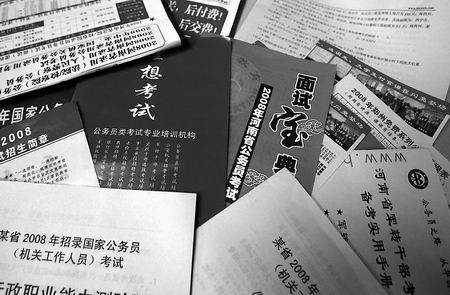 已經在某企業單位工作一年的黃中(化名)則是考公務員大軍中的一員,他報考了今年河南省直機關公務員。為了“提高”自己,需要到社會上的培訓班“補補課”。他報了一個考前輔導班,花費了1100多元。據說,還有沖刺班、面試班、保過班等各種名目,如果再參加,還需要花費數千元。“參加這樣的考前輔導班是否有用?”面對記者的詢問,黃中一臉漠然,“錢是花了,但心里面沒有底。”
