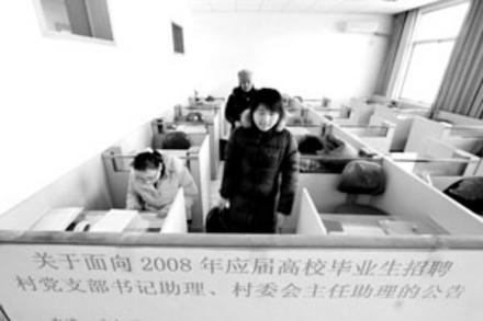 今天是北京市面向2008年應屆高校畢業(yè)生招聘村黨支部書記助理、村委會主任助理的第一天。