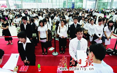 “在深圳已經(jīng)找了近兩個月的工作了,很少有面試的機會,大企業(yè)都把招聘的目標瞄準了211工程學(xué)校,小企業(yè)提供的薪水又很低。從目前的形勢來看,要在深圳找到自己比較滿意的工作機會是比較渺茫了。”深圳大學(xué)法學(xué)院的小劉表示,他來自湛江,在仔細思考了幾天之后,他決定回老家找工作,“回家競爭沒那么厲害,也可以找熟人幫幫忙,至少比在深圳干等要強。”